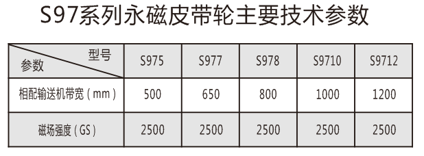 注:S95、S97、S99系列永磁分離設備,采用了高強磁性材料,具有磁性強、磁分離效果好、運轉平穩、 性能可靠等優點